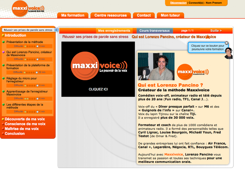 ...créée par Lorenzo Pancino, professionnel des médias, comédien voix-off, animateur radio et télé. Il enseigne les techniques vocales et d’expression utilisées dans les medias, pour une progression notable de la communication orale de vos TC.